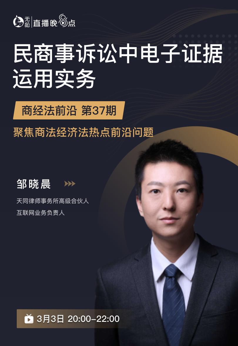 周三(3月3日) 邀请嘉宾 邹晓晨 天同律师事务所高级合伙人 互联网业务负责人 直播主题 民商事诉讼中电子证据运用实务 数字化已经成为现代社会人们普遍的生存方式,电子证据成为最主要的一类证据形式,在民商事诉讼中有广泛的运用场景,尤其是网络知识产权、网络侵犯隐私权、电子合同纠纷。电子证据的出现频率越来越高,应用范围越来越广,但理论界对电子证据的界定存在争议,且电子证据具有易破坏性、隐蔽性、多媒性等特征,实务中,对电子证据真实性、准确性、完整性的认定常常存在障碍。 本次讲座我们邀请到了天同律师事务所高级合伙人、互联网业务负责人邹晓晨律师。邹晓晨律师拥有十三年以上的法律从业经验。其凭借法律、计算机技术交叉学科背景,创建了行业中唯一拥有自主互联网技术力量的互联网法律服务团队,利用数据采集、软件逆向分析、信息监控、渗透测试、诉讼常用工具类软件开发等技术为互联网企业提供更专业、更高效的法律服务。本次讲座,邹晓晨律师将为我们全面解析电子证据的理论界定和实务运用要点。让我们期待他的精彩分享! 参与方式